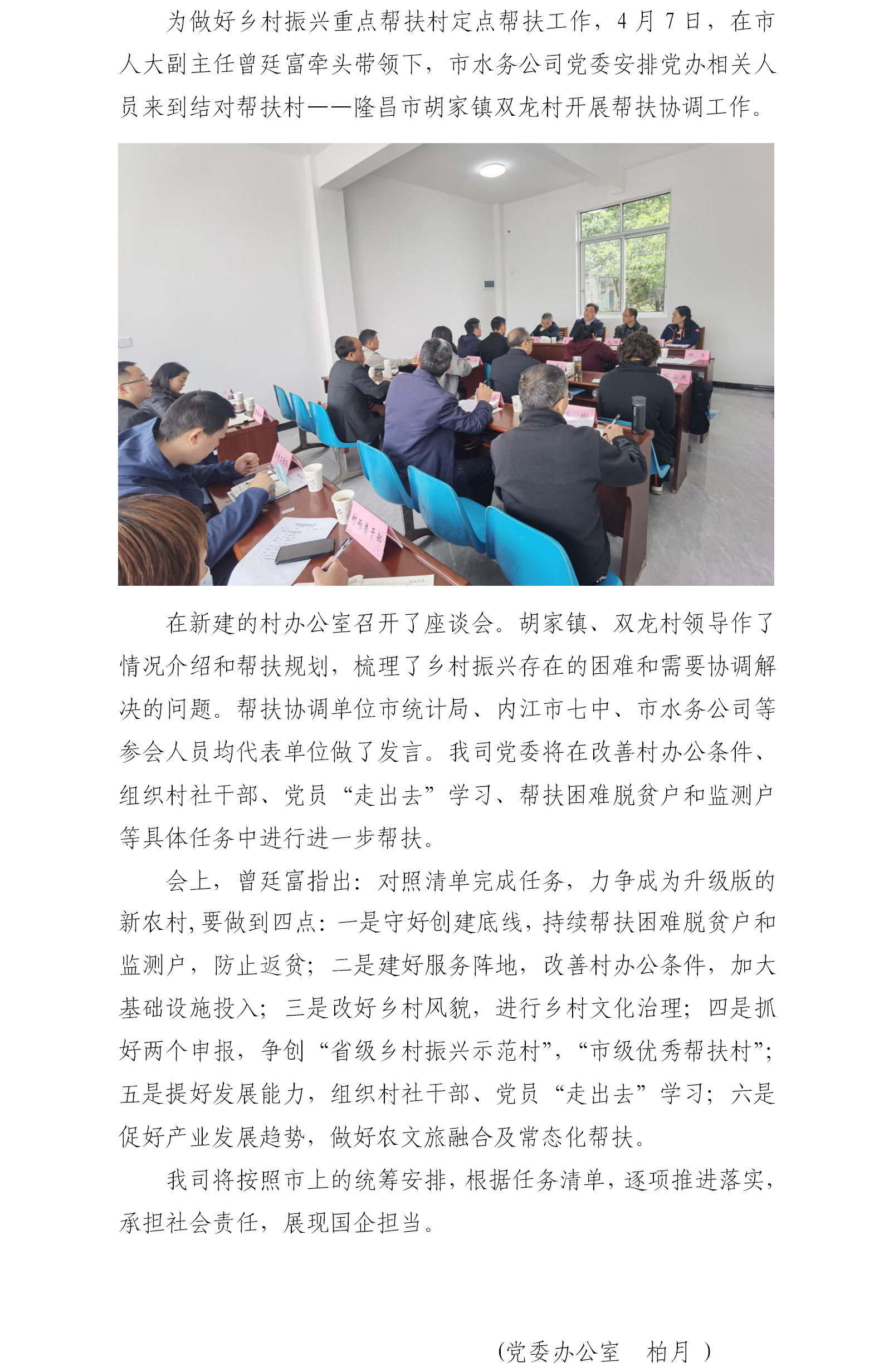 市水務公司到隆昌市胡家鎮(zhèn)雙龍村開展幫扶協(xié)調工作