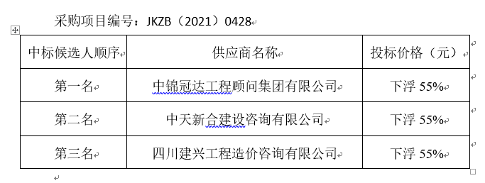 內(nèi)江市應(yīng)急供水搶險(xiǎn)基地工程項(xiàng)目造價(jià)咨詢(編制)服務(wù)標(biāo)段評(píng)標(biāo)結(jié)果公示