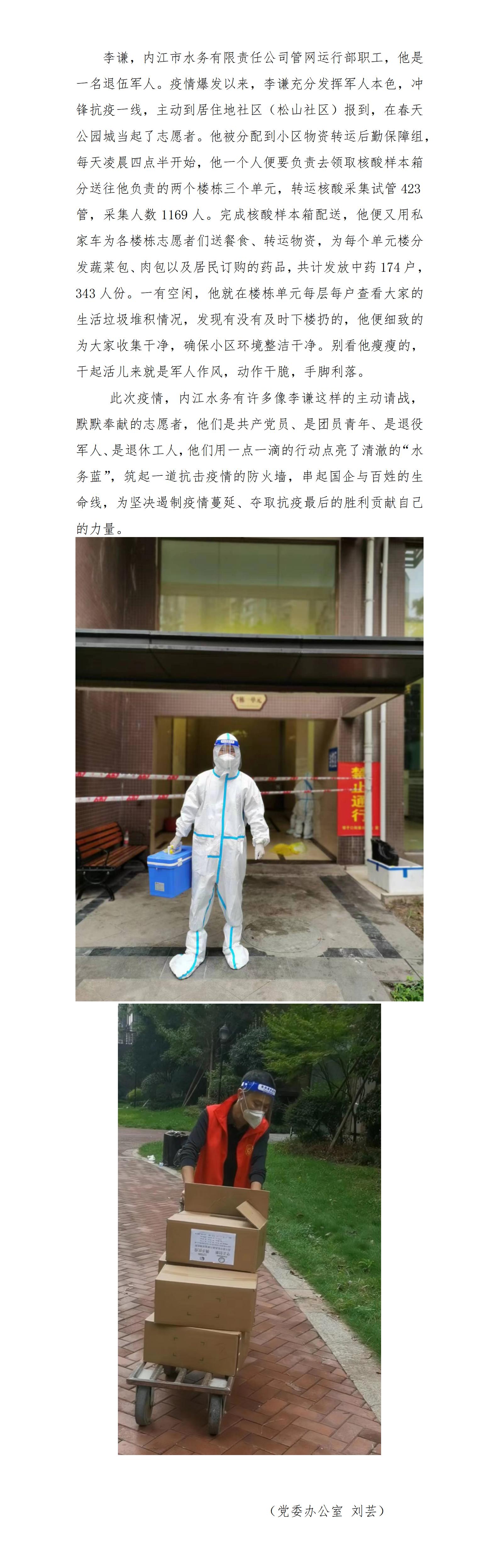 微光共聚 點(diǎn)亮水務(wù)藍(lán)——抗疫志愿者李謙
