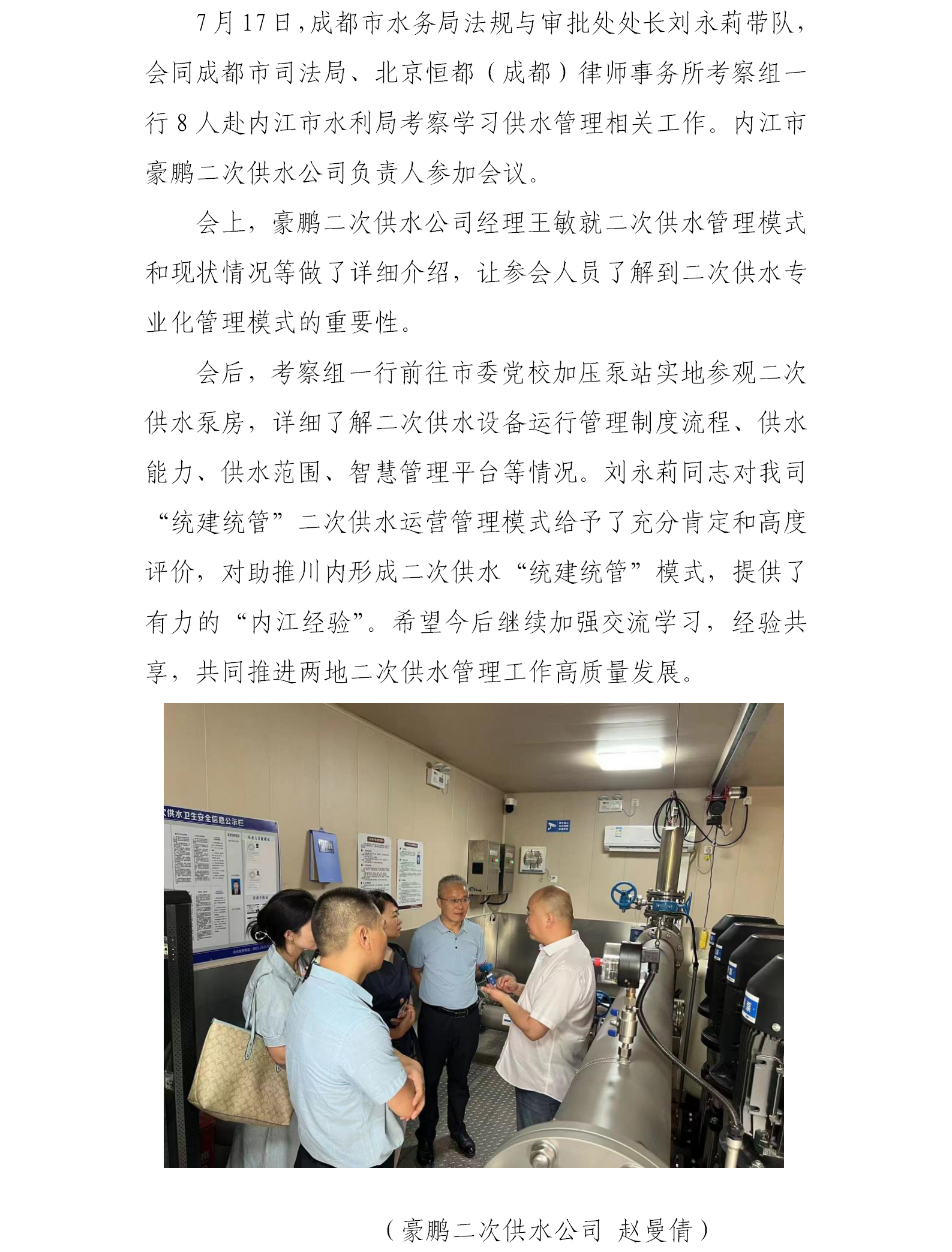 實(shí)地考察二次供水 交流互鑒共促提升