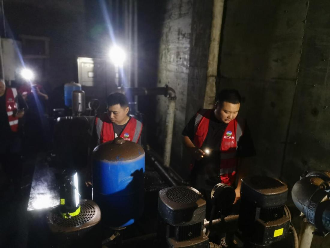 7月15日,內(nèi)江市水務(wù)有限責(zé)任公司(以下簡稱市水務(wù)公司)子公司豪鵬二次供水服務(wù)有限責(zé)任公司(以下簡稱豪鵬公司)接到該小區(qū)物業(yè)求助后,立即組織二次供水技術(shù)人員前往現(xiàn)場查看受災(zāi)情況。技術(shù)人員在對二次供水設(shè)施受損情況進行評估后,向物業(yè)公司及社區(qū)管理人員提出二次供水設(shè)施維修指導(dǎo)意見,并幫助小區(qū)物業(yè)制定應(yīng)急供水搶險及設(shè)備搶修方案,確保第一時間恢復(fù)居民供水。同時,豪鵬公司立即聯(lián)動市水務(wù)公司客戶服務(wù)部,在受災(zāi)小區(qū)內(nèi)設(shè)置了臨時取水點,以緩解居民用水困難。