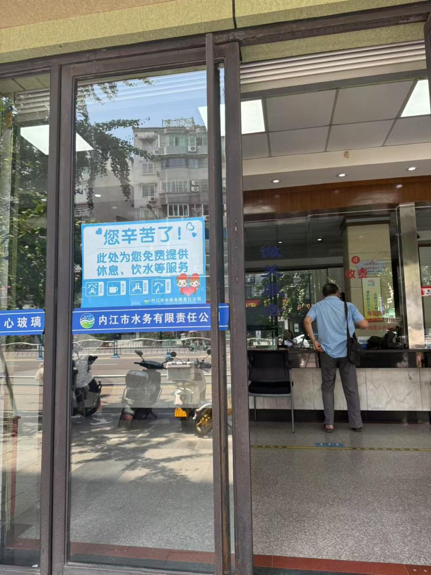 依托公司營業(yè)收費大廳,公司第三黨支部主動作為,在醒目位置張貼“熱可納涼、渴能飲水、累可歇腳”等標識標語,為外賣小哥、快遞員、環(huán)衛(wèi)工人等戶外工作者增設“水務清涼角”,免費提供納涼避暑區(qū)域,將營業(yè)廳打造成清涼港灣,為他們送去一份“清涼”,傳遞一份“溫情”。