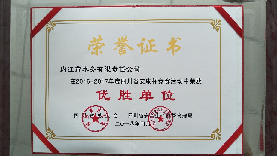 2016-2017年度四川省安康杯競賽活動中榮獲優(yōu)勝單位