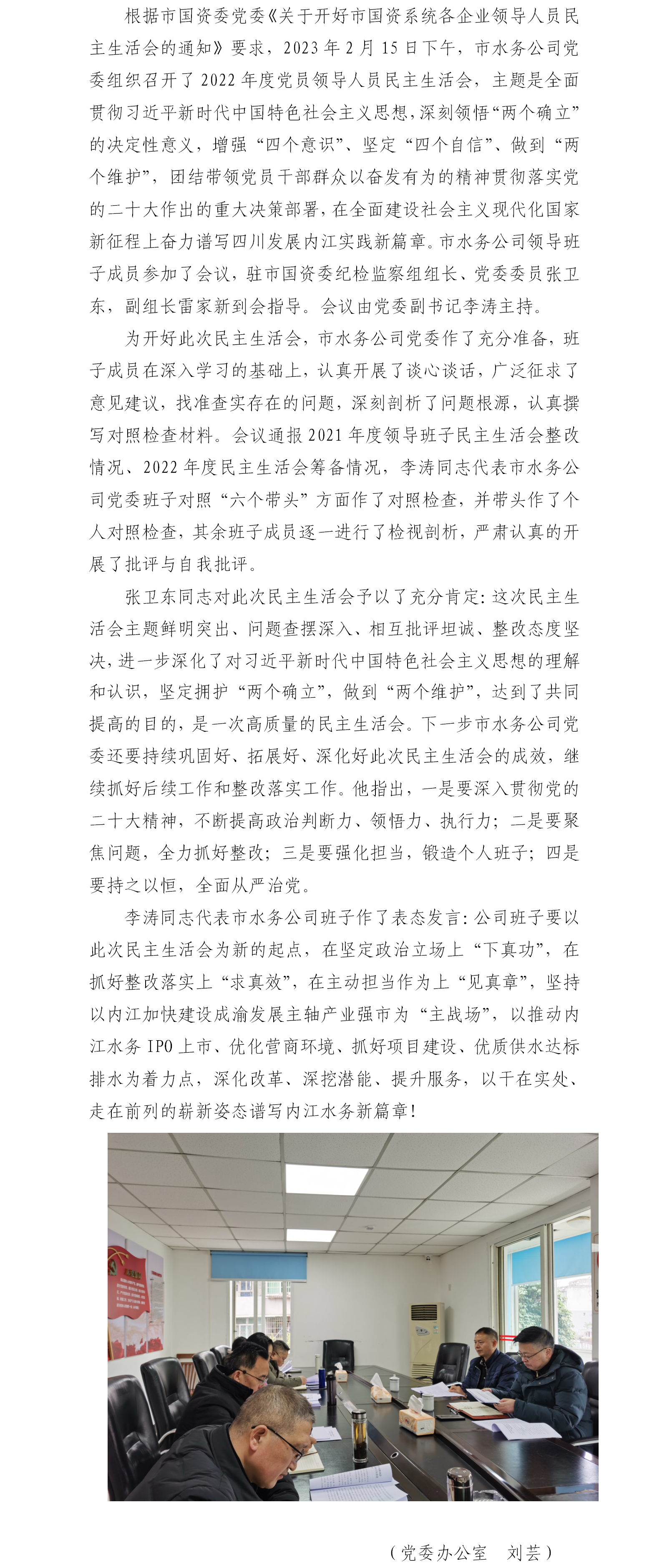 市水務公司黨委召開2022年度黨員領導人員民主生活會