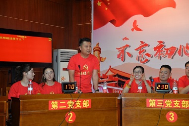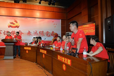 此次競賽以6個基層黨支部為單位組隊參賽,每支隊伍3名參賽隊員,且每支隊伍須有一名黨員干部帶頭參賽。競賽題目分為單(多)選題、判斷題、填空題、問答題等四種題型,主要包含了《中國共產(chǎn)黨黨章》、《中國共產(chǎn)黨支部工作條例》、《中國共產(chǎn)黨紀(jì)律處分條例》等方面的內(nèi)容。