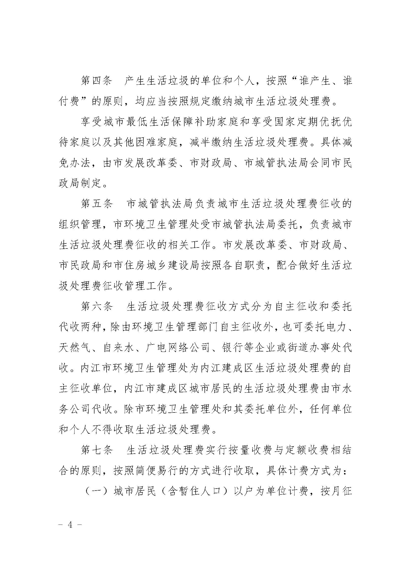關(guān)于印發(fā)《內(nèi)江市城市生活垃圾處理費(fèi)征收管理辦法》的通知