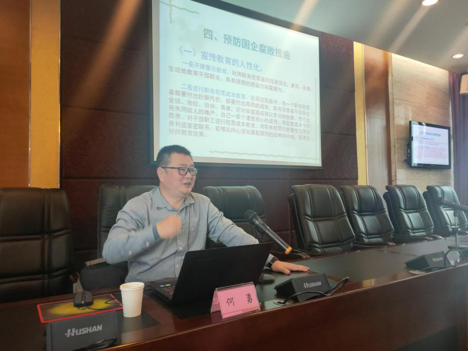 講座上,何勇以“國(guó)有企業(yè)預(yù)防腐敗實(shí)踐探索”為題,從建國(guó)以來(lái)反腐敗歷史的簡(jiǎn)要回顧、當(dāng)前國(guó)企領(lǐng)域反腐敗的形勢(shì)、水務(wù)企業(yè)違紀(jì)違法典型案例、預(yù)防國(guó)企腐敗措施四個(gè)方面,剖析腐敗根源,深入淺出地將國(guó)有企業(yè)預(yù)腐防變工作做了詳細(xì)的梳理和講解,具有很強(qiáng)的教育性和警示性。公司黨委副書(shū)記、總經(jīng)理李濤結(jié)合講座內(nèi)容,對(duì)進(jìn)一步抓好黨風(fēng)廉政工作提了四點(diǎn)要求:一是要強(qiáng)化政治定力;二是要抓實(shí)紀(jì)法學(xué)習(xí);三是要堅(jiān)持嚴(yán)于律己;四是要自覺(jué)接受監(jiān)督。李濤強(qiáng)調(diào),講座的目的在于進(jìn)一步提高干部職工對(duì)黨風(fēng)廉政建設(shè)重要性的認(rèn)識(shí),切實(shí)加強(qiáng)廉潔自律教育,將黨風(fēng)廉政建設(shè)不斷引向深入。