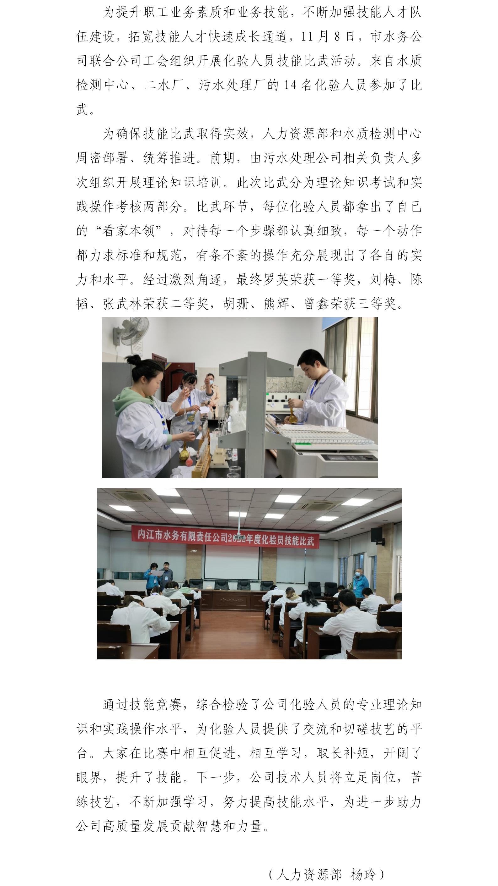 市水務(wù)公司開展化驗人員技能比武