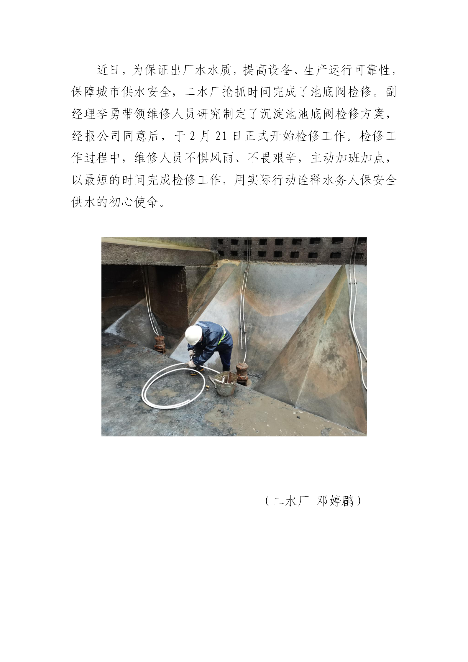 二水廠檢修池底閥,確保水質安全