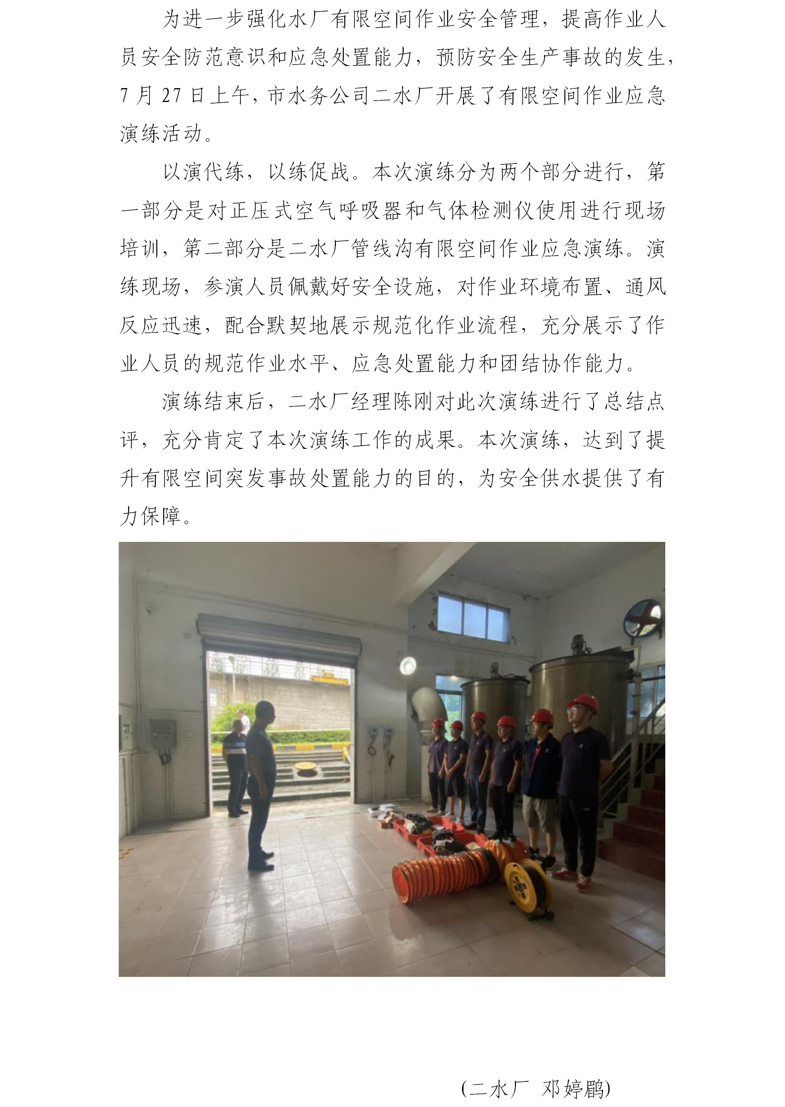 市水務(wù)公司二水廠開(kāi)展有限空間應(yīng)急演練