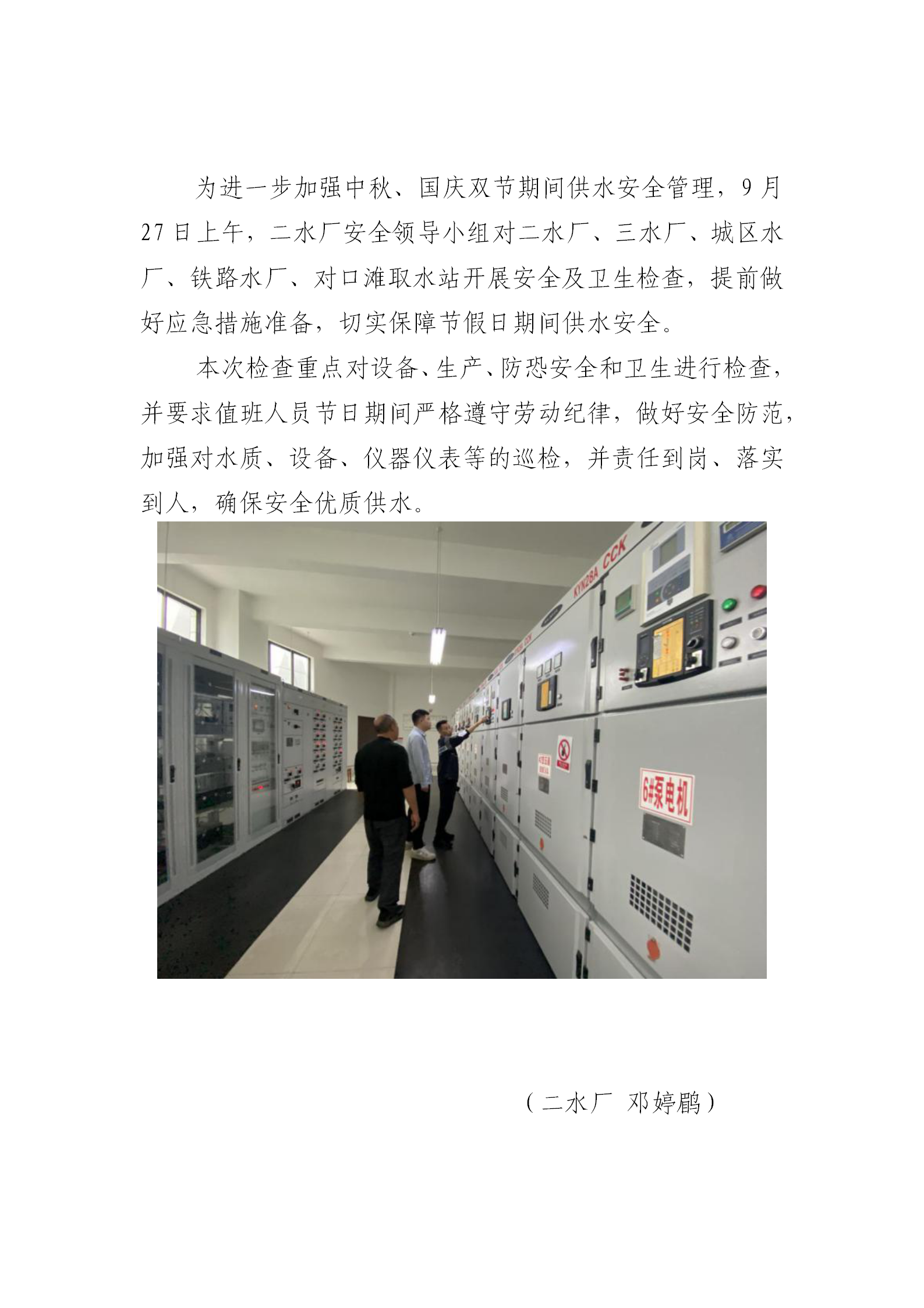 市水務(wù)公司二水廠開(kāi)展節(jié)前安全生產(chǎn)檢查