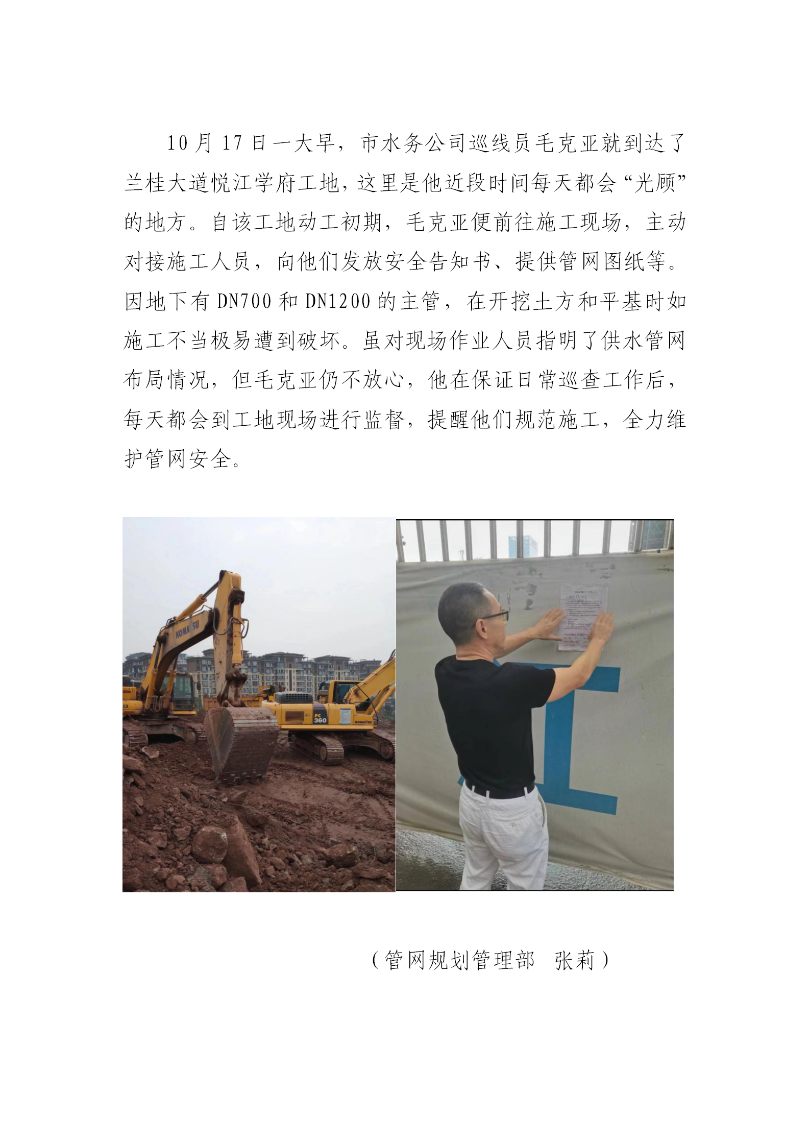 施工現(xiàn)場勤“光顧 管網(wǎng)安全我維護