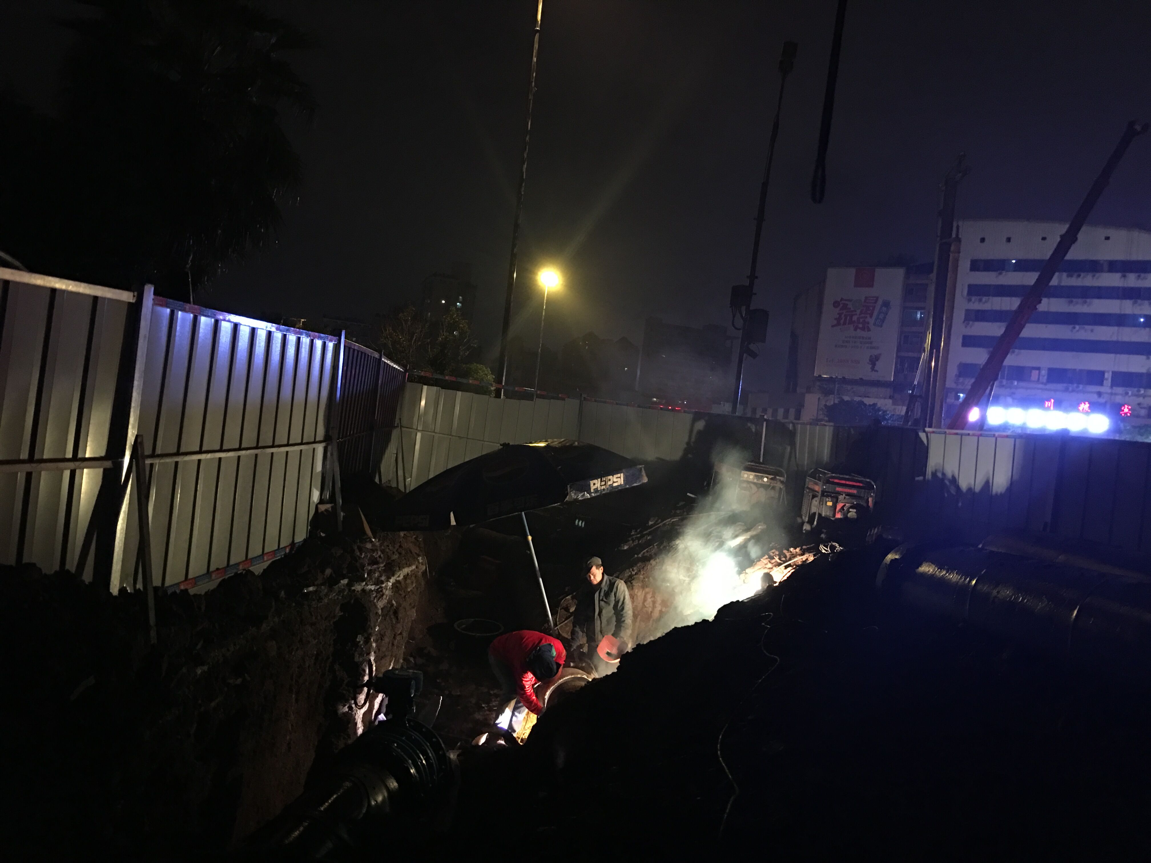 內(nèi)江市水務(wù)有限責(zé)任公司為配合西林大橋南北下穿工程順利進(jìn)行,積極組織豪盛安裝公司、工程管理部、管網(wǎng)運(yùn)行部等相關(guān)部門(mén)進(jìn)行西林大橋南北橋頭下穿DN500給水管道改造。為保證附近居民白天的正常用水,我司特意把工期定在晚上和凌晨。2016年11月22日晚上11點(diǎn)多,陰雨綿綿,寒風(fēng)刺骨,公司黨委副書(shū)記、紀(jì)委書(shū)記、工會(huì)主席李濤帶領(lǐng)黨群工作部提上涼菜、面包和牛奶到施工現(xiàn)場(chǎng)慰問(wèn)挑燈夜戰(zhàn)、頂風(fēng)作業(yè)的加班人員。他們不畏嚴(yán)寒、不知饑餓,只為不影響居民正常生活、保證城市安全供水埋頭苦干的水務(wù)人,讓我們不得不心生敬意。