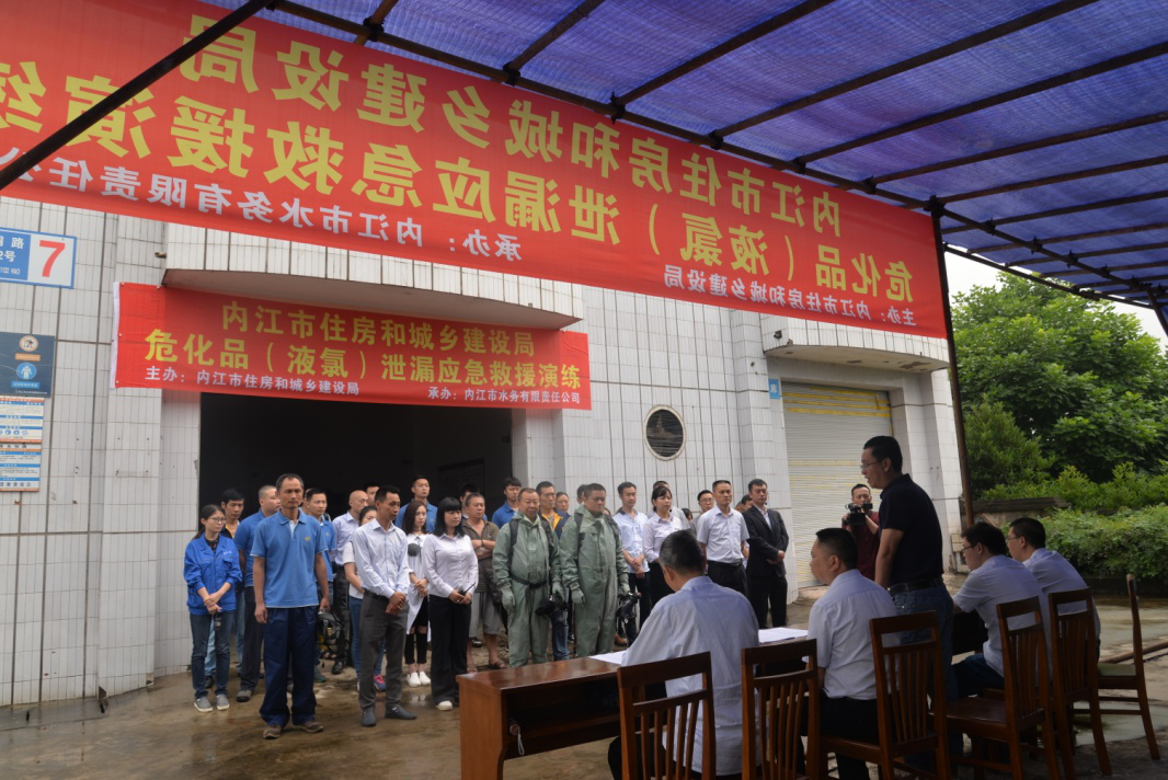 2017年6月16日上午,為做好?;钒踩芾砉ぷ鳎0踩┧?/span>,公司在二水廠成功進行液氯泄漏應急救援演練。本次演練,由市住建局主辦、公司承辦,公司黨委書記、董事長、總經(jīng)理寧印福任總指揮,總工程師蒲彬任現(xiàn)場總指揮,生產(chǎn)技術部組織,二水廠具體實施,共計 50多人參與演練。