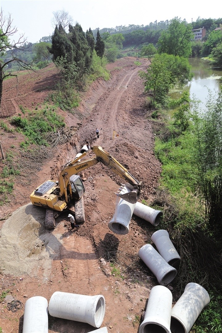 日前,記者來到位于東興區(qū)新江街道辦事處清流村(沱江、清流河、小青龍河交匯處),看到不少工人在工地上忙碌,有的開著挖機(jī)平場地,有的在挖溝槽埋管網(wǎng),有的在用貨車運(yùn)輸土方,好不熱鬧。