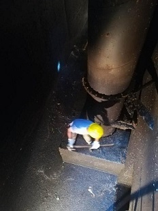 4月11日下午,各項(xiàng)準(zhǔn)備工作有序開(kāi)展。廠外提升泵站停運(yùn),工作人員頭戴安全帽、身著雨衣褲,迎著泵坑污水散發(fā)的臭氣,踩著淤泥渣土下井,清渣工作緊鑼密鼓的進(jìn)行。在廠內(nèi)機(jī)修及工藝人員的共同努力下,一期、二期提升泵房和濾池泵坑清渣工作于當(dāng)晚21點(diǎn)順利完成,保證了污水處理廠設(shè)備的正常運(yùn)行和水質(zhì)達(dá)標(biāo)排放。