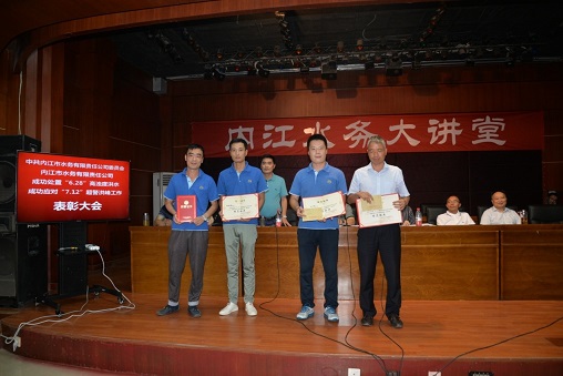 會(huì)上,大家觀看了成功處置“6·28”高濁度洪水和“7·12”超警戒洪峰專(zhuān)題片。公司黨委委員、副總經(jīng)理林冬宣讀了《關(guān)于表彰成功處置6·28高濁度洪水和“7·12”超警戒洪峰的決定》。公司領(lǐng)導(dǎo)班子成員分別為獲得先進(jìn)的集體和個(gè)人頒獎(jiǎng)。四位模范標(biāo)兵分享了他們?cè)趦纱螕岆U(xiǎn)救災(zāi)工作中的親身經(jīng)歷和思想感悟。在他們的發(fā)言中,我們都能尋找到一個(gè)共同點(diǎn),他們都以身為一名水務(wù)人關(guān)鍵時(shí)刻勇于擔(dān)當(dāng)而驕傲。